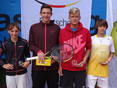 夏のドイツジュニア選手権、トロフィーを獲得し表彰式に参加した4選手です。今年はタイトル3つ、準優勝2つ。実りある大会でした。この好機を活かして、冬のドイツジュニアマスターズ室内大会では増々多くのタイトル獲得選手が誕生するよう活動します。さて、明日はスタン選手決勝!多くのジュニア選手もテレビに釘付けになるでしょう。