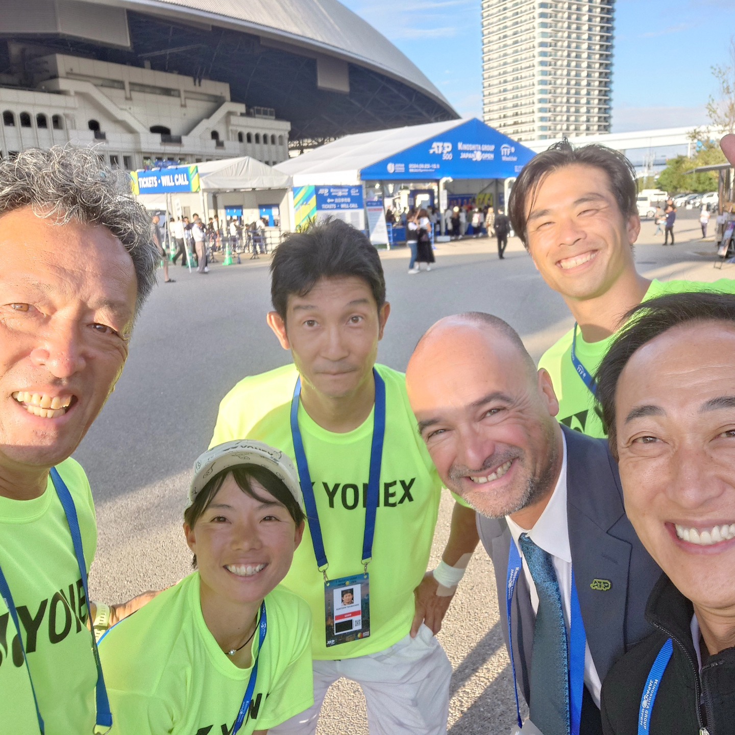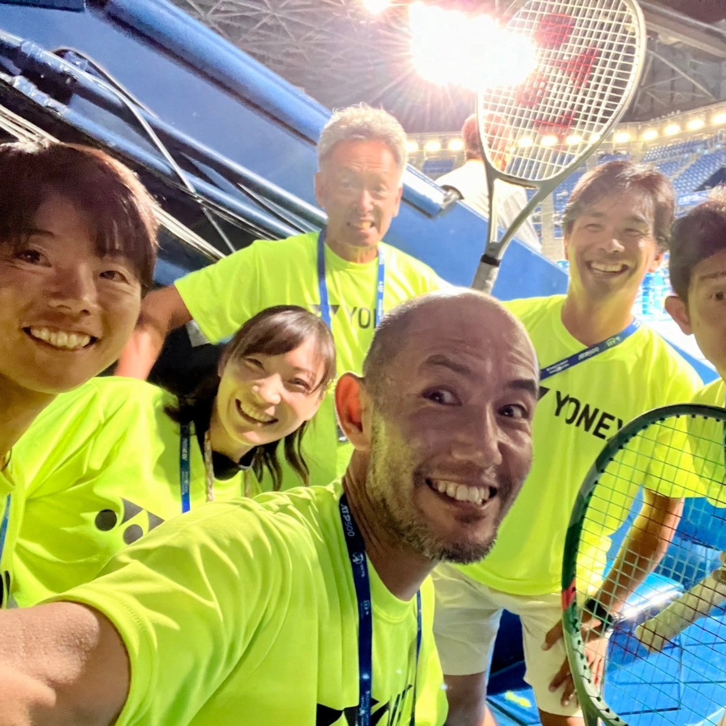 チームをコートに呼び寄せての記念撮影 その後も、多くのテニスファンとの大切な時間を過ごしてました🤗