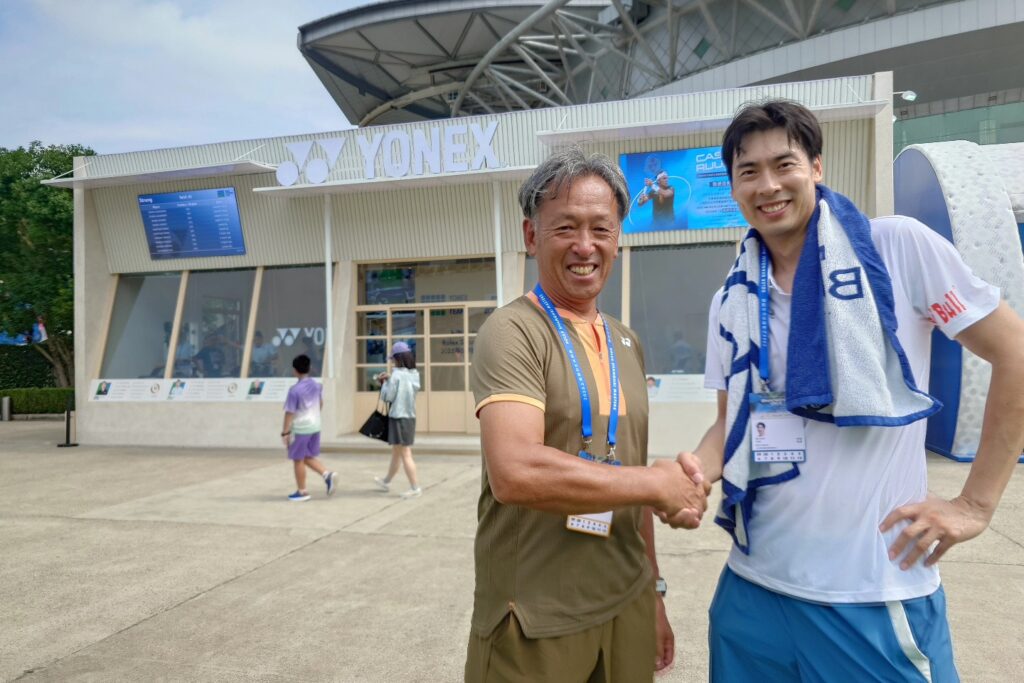 数年前から会場でヒッティングを務める彼は、様々なプレーヤーと打合いを担当 数年前ではフェデラー、昨年はシナーらをのお相手をしておりました。